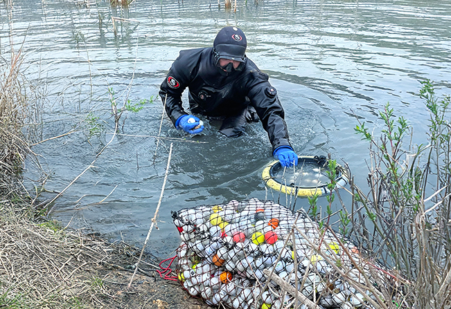 Wir entfernen Bälle effizient aus Teichen und Wasserhindernissen. Das unterstützt saubere, gesunde Gewässer.